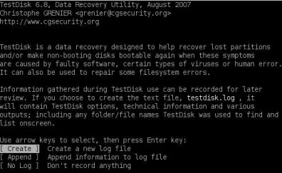 selecione "Create" (selecione "Create" se for a primeira vez que se usa esta ferramenta, senão selecione "Append". Caso tenha mais de um HD, aparecerá uma opção para selecioná-los. Então, selecione o HD o qual se quer recuperar as partições)