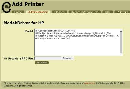 # /usr/sbin/lpadmin -p Laser -v parallel:/dev/lp0 -P /root/laser.ppd