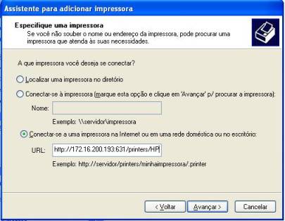 No nosso exemplo ficaria assim: http://172.16.200.193:631/printers/HP, conforme a figura abaixo: