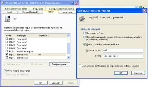 Só para conhecimento, também é possível configurar um usuário e uma senha com permissão de impressão dentro das propriedades de impressão do MS-Windos. Veja na figura a seguir: