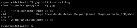 $ gpg --list-secret (lista a chave privada e as informações contida nela, conforme figura a seguir)