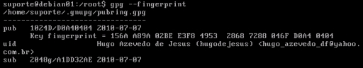 Obs: o interessante é que o "user ID" (NÚMERO IDENTIFICADOR CHAVE PÚBLICA) é sempre igual ao final da FINGERPRINT da chave. Veja nas duas figuras anteriores essa igualdade.