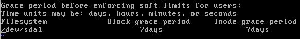Definindo a quantidade de dias que o usuário receberá avisos depois que ele ultrapassar a quantidade de bytes e/ou inodes definida na opção "soft":