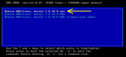 Reinicie o sistema e escolha no Grub o novo Kernel do Xen